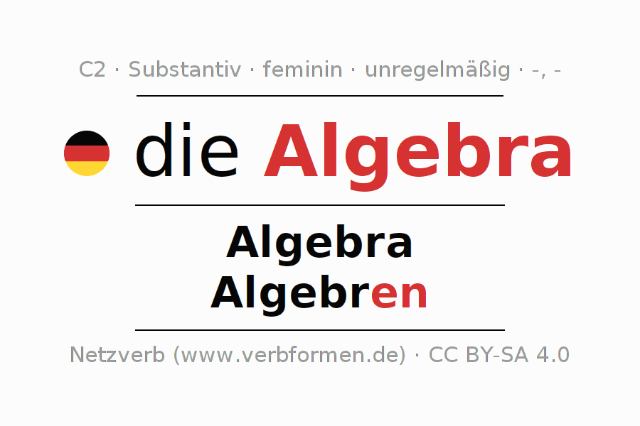 - Singular: die Algebra, der Algebra, der Algebra, die Algebra