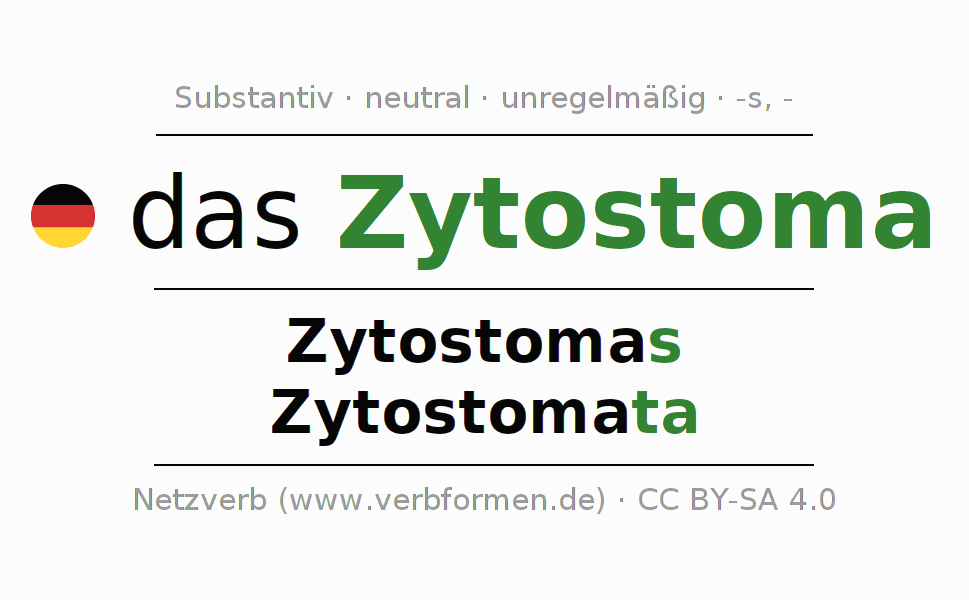 - Plural: die Zytostomata, der Zytostomata, den Zytostomata, die Zytostomata
