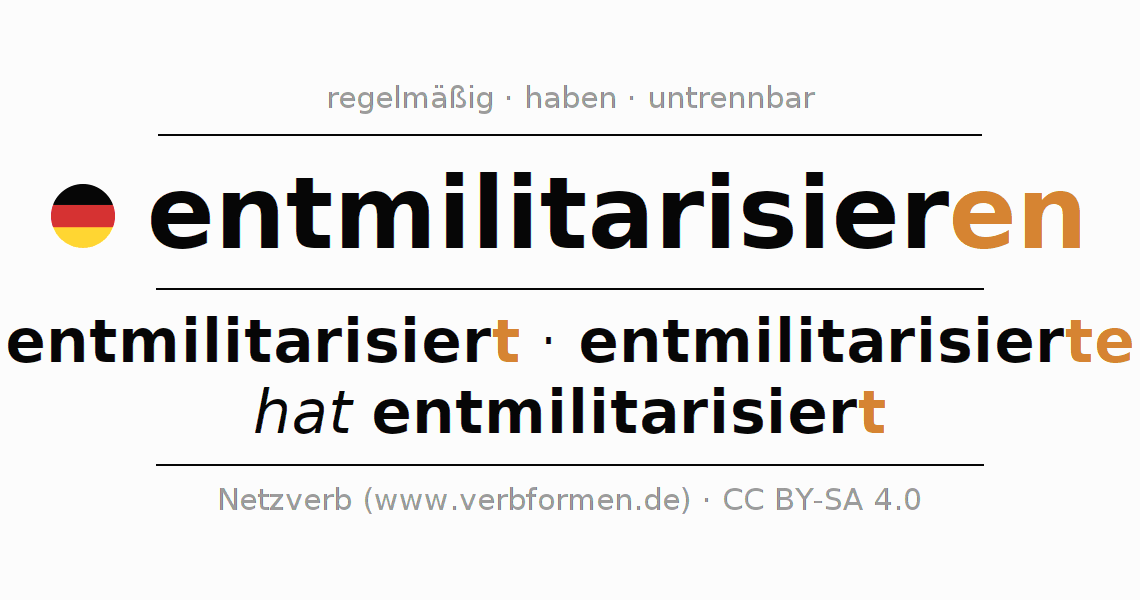 | ich | entmilitarisier(e) | entmilitarisierte | entmilitarisiere | entmilitarisierte | - |