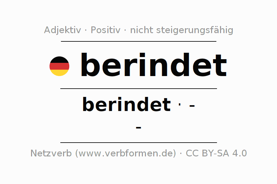 Die berindet Deklination und Steigerung online als Deklinations- und Komparationstabellen mit allen starken, schwachen und gemischten Formen. Diese werden übersichtlich als Tabelle im Singular (Einzahl) und im Plural (Mehrzahl) und in allen vier Fällen Nominativ (auch 1. Fall, Wer-Fall), Genitiv (auch 2. Fall, Wes-Fall, Wessen-Fall), Dativ (auch 3. Fall, Wem-Fall) und Akkusativ (auch 4. Fall, Wen-Fall) dargestellt. Weitere Informationen finden sich unter Wiktionary berindet und unter berindet im Duden.