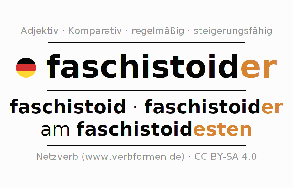 - Maskulin: der faschistoidere, des faschistoideren, dem faschistoideren, den faschistoideren
