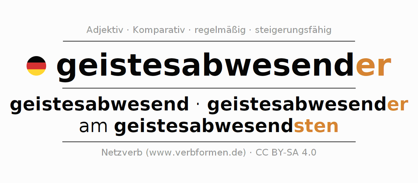 - Maskulin: geistesabwesenderer, geistesabwesenderen, geistesabwesenderem, geistesabwesenderen