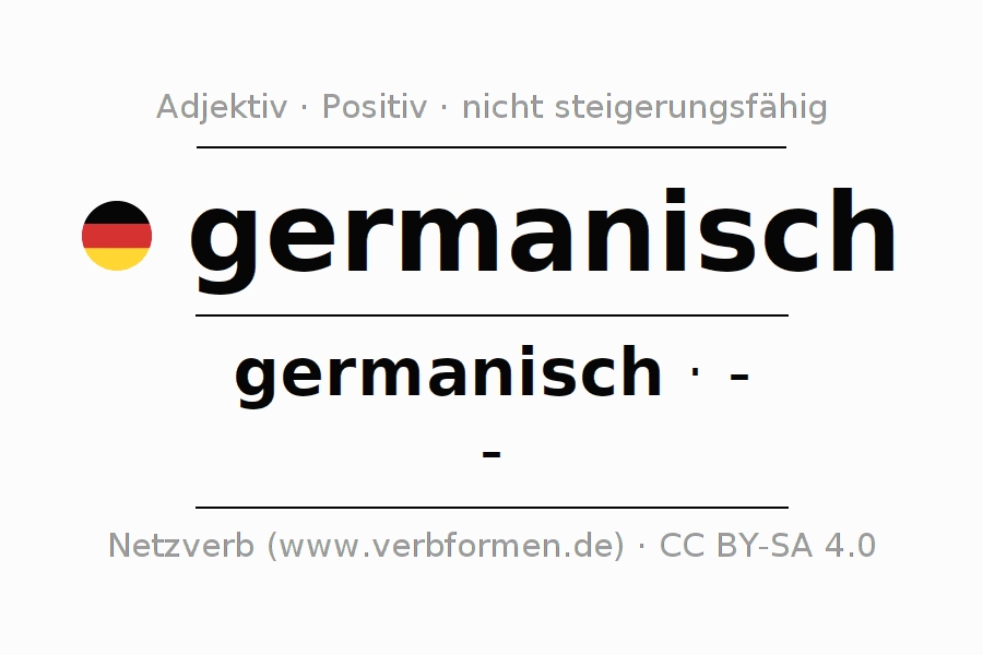 Die Deklination des Adjektivs germanisch erfolgt über die Komparationsformen germanisch,-,-. Die Endungen für die Steigerung im Komparativ und Superlativ sind -/-. Das Adjektiv germanisch kann sowohl attributiv vor einem Nomen mit und ohne Artikel jeweils stark, schwach und gemischt verwendet werden als auch prädikativ in Verbindung mit einem Verb.Man kann hier nicht nur germanisch deklinieren und steigern, sondern alle deutschen Adjektive. Kommentare ☆