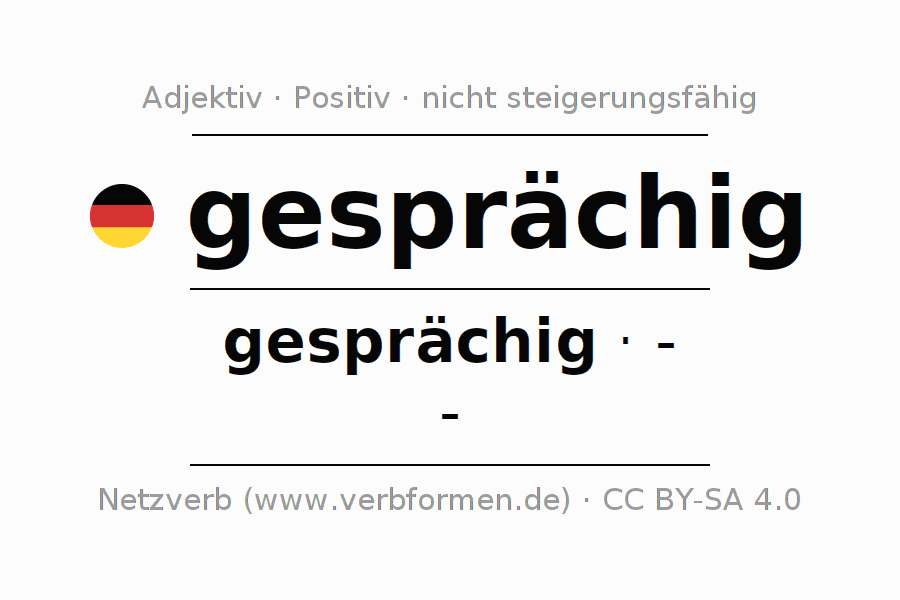 Zusammenfassung aller Deklinationsformen und Steigerungsformen des Adjektivs bzw. Eigenschaftswortes gesprächig in allen Genera und Fällen