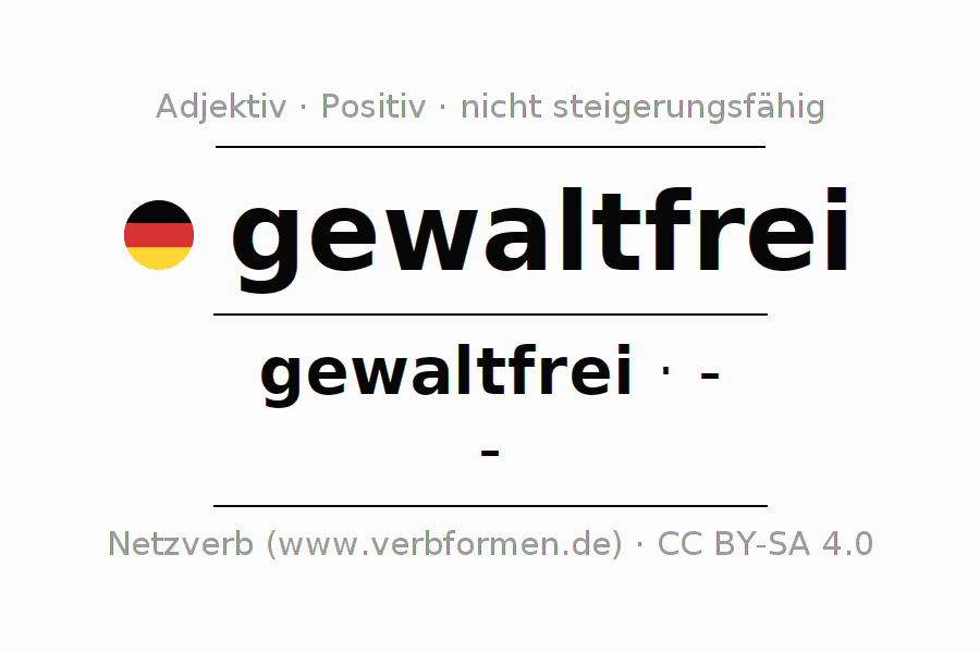 - Maskulin: der gewaltfreie, des gewaltfreien, dem gewaltfreien, den gewaltfreien