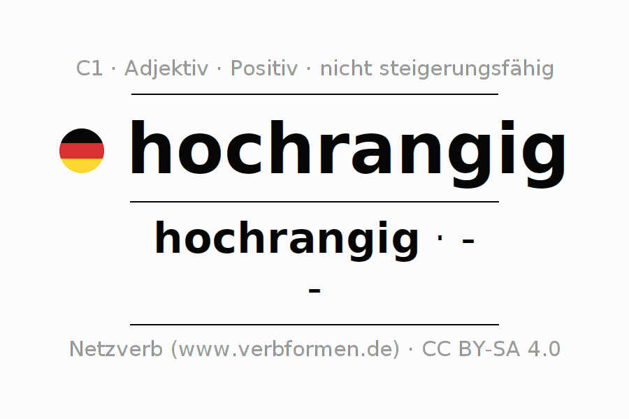 - Plural: hochrangige, hochrangiger, hochrangigen, hochrangige