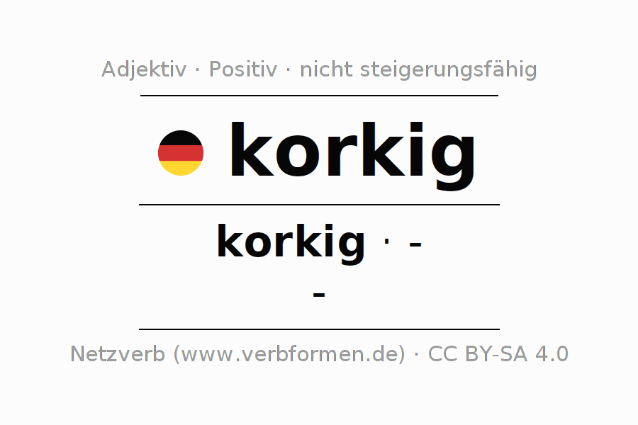 Die Deklination des Adjektivs korkig erfolgt über die nicht steigerbare Form korkig. Das Adjektiv besitzt keine Formen für den Komparativ und Superlativ. Das Adjektiv korkig kann sowohl attributiv vor einem Nomen mit und ohne Artikel jeweils stark, schwach und gemischt verwendet werden als auch prädikativ in Verbindung mit einem Verb.Man kann hier nicht nur korkig deklinieren und steigern, sondern alle deutschen Adjektive. Kommentare ☆