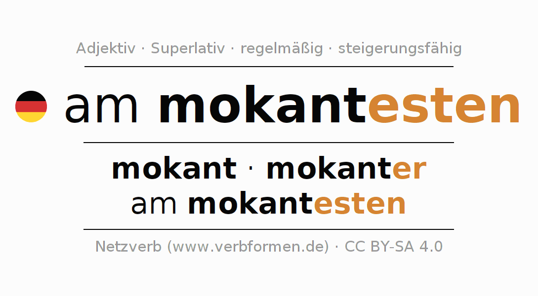 - Maskulin: der mokanteste, des mokantesten, dem mokantesten, den mokantesten