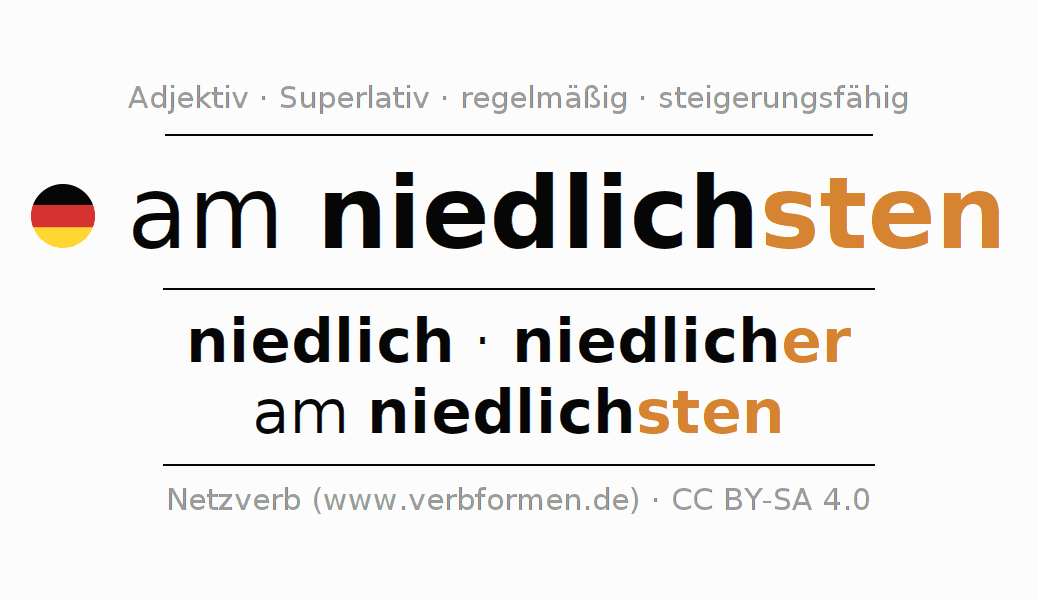 - Plural: die niedlichsten, der niedlichsten, den niedlichsten, die niedlichsten