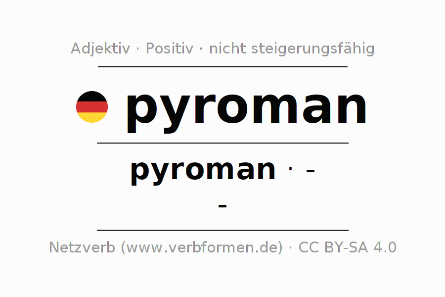 - Maskulin: ein pyromaner, eines pyromanen, einem pyromanen, einen pyromanen