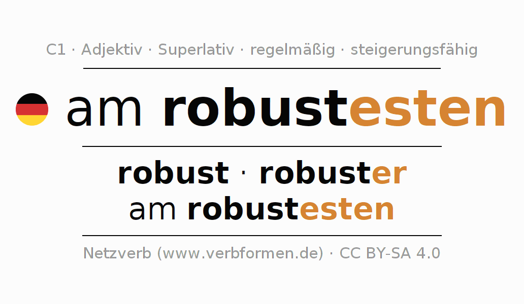 - Plural: die robustesten, der robustesten, den robustesten, die robustesten