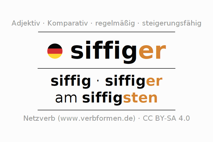 - Maskulin: der siffigere, des siffigeren, dem siffigeren, den siffigeren
