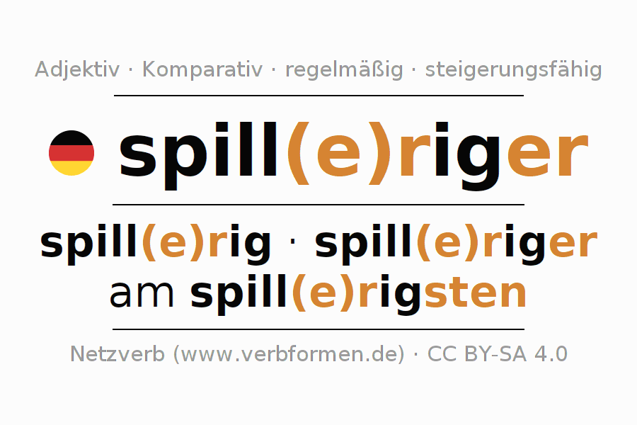 - Neutral: ein spill(e)rigeres, eines spill(e)rigeren, einem spill(e)rigeren, ein spill(e)rigeres