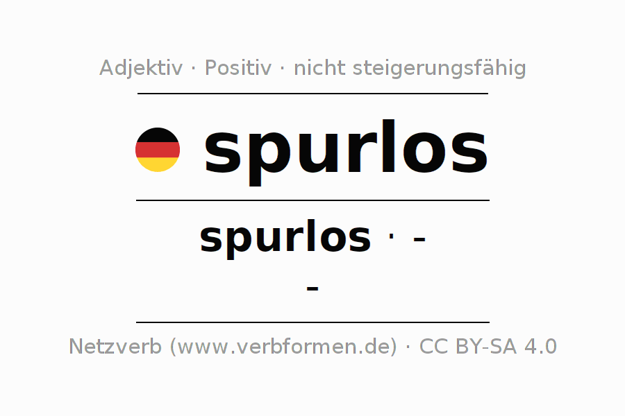Die Deklination des Adjektivs spurlos erfolgt über die nicht steigerbare Form spurlos. Das Adjektiv besitzt keine Formen für den Komparativ und Superlativ. Das Adjektiv spurlos kann sowohl attributiv vor einem Nomen mit und ohne Artikel jeweils stark, schwach und gemischt verwendet werden als auch prädikativ in Verbindung mit einem Verb.Man kann hier nicht nur spurlos deklinieren und steigern, sondern alle deutschen Adjektive. Kommentare ☆