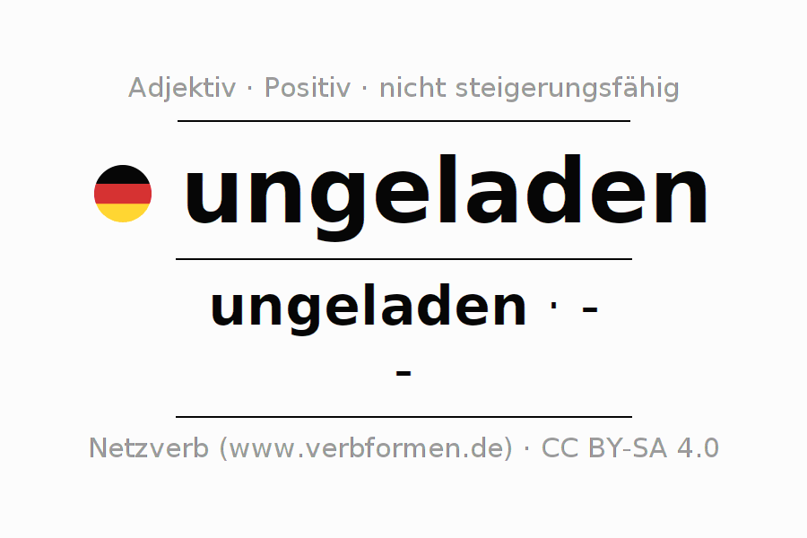Die Deklination des Adjektivs ungeladen erfolgt über die nicht steigerbare Form ungeladen. Das Adjektiv besitzt keine Formen für den Komparativ und Superlativ. Das Adjektiv ungeladen kann sowohl attributiv vor einem Nomen mit und ohne Artikel jeweils stark, schwach und gemischt verwendet werden als auch prädikativ in Verbindung mit einem Verb.Man kann hier nicht nur ungeladen deklinieren und steigern, sondern alle deutschen Adjektive. Kommentare ☆