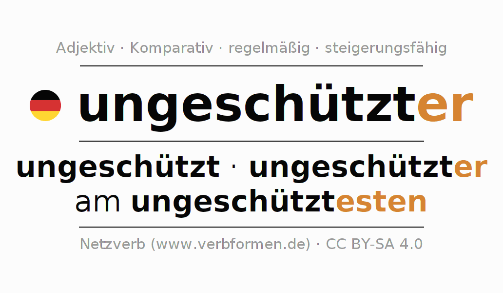 - Maskulin: der ungeschütztere, des ungeschützteren, dem ungeschützteren, den ungeschützteren