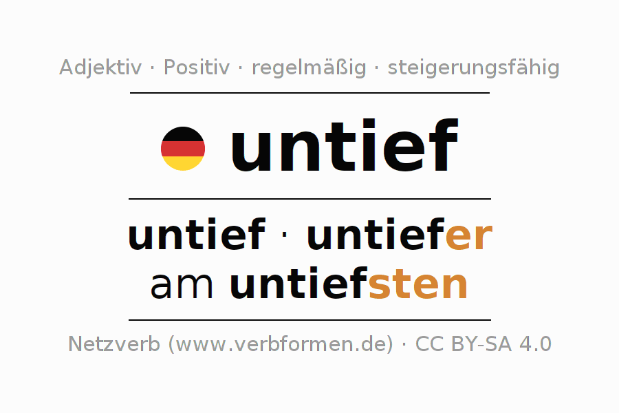 Zusammenfassung aller Deklinationsformen und Steigerungsformen des Adjektivs bzw. Eigenschaftswortes untief in allen Genera und Fällen