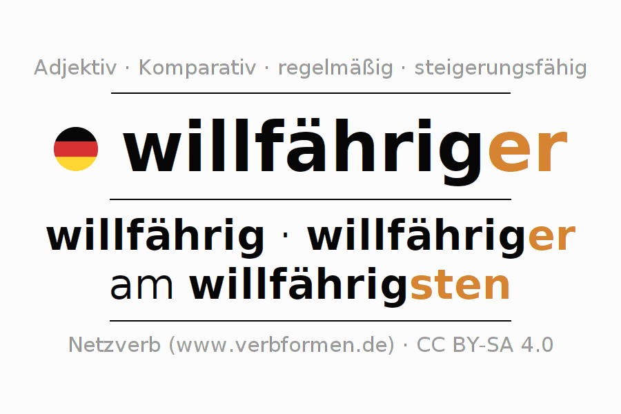 - Maskulin: willfährigerer, willfährigeren, willfährigerem, willfährigeren