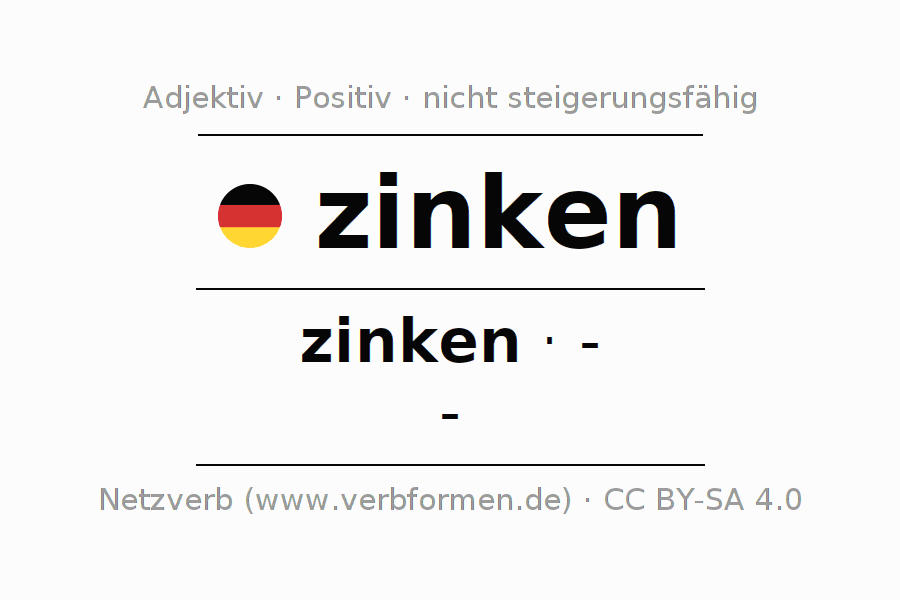 Die Deklination des Adjektivs zinken erfolgt über die nicht steigerbare Form zinken. Das Adjektiv besitzt keine Formen für den Komparativ und Superlativ. Das Adjektiv zinken kann sowohl attributiv vor einem Nomen mit und ohne Artikel jeweils stark, schwach und gemischt verwendet werden als auch prädikativ in Verbindung mit einem Verb.Man kann hier nicht nur zinken deklinieren und steigern, sondern alle deutschen Adjektive. Kommentare ☆