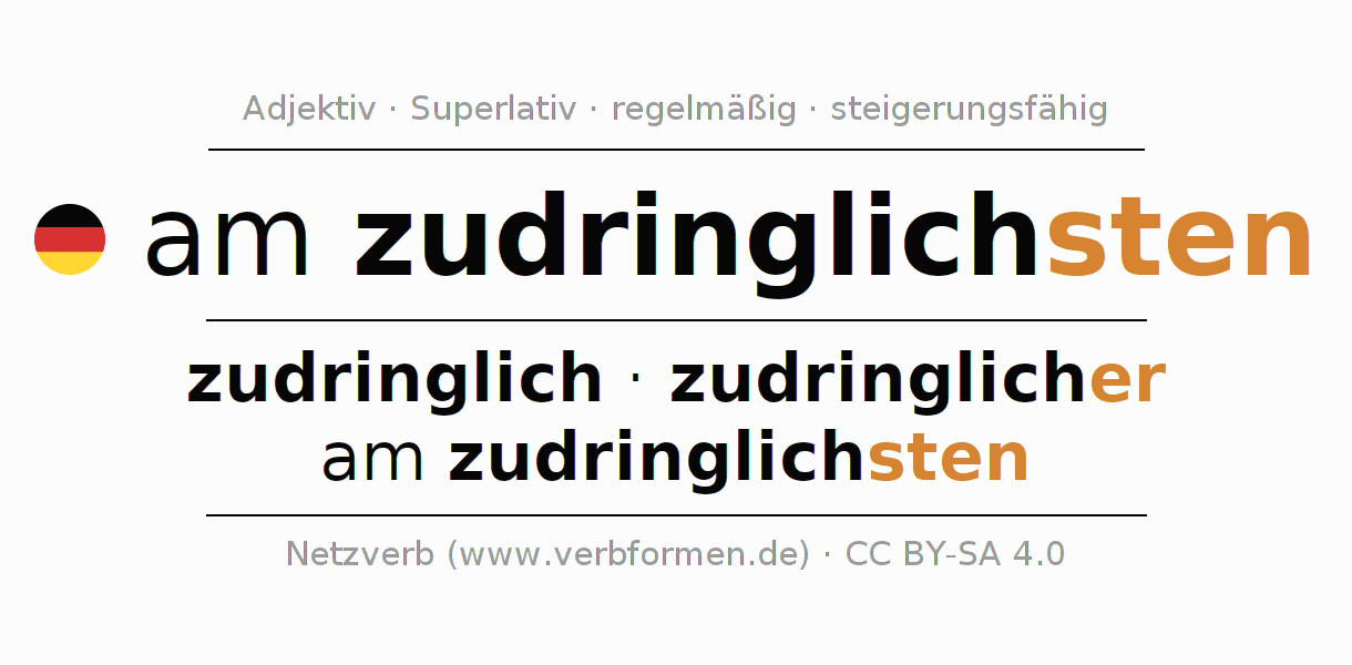- Maskulin: der zudringlichste, des zudringlichsten, dem zudringlichsten, den zudringlichsten