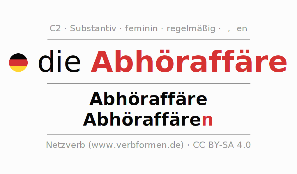 - Singular: die Abhöraffäre, der Abhöraffäre, der Abhöraffäre, die Abhöraffäre