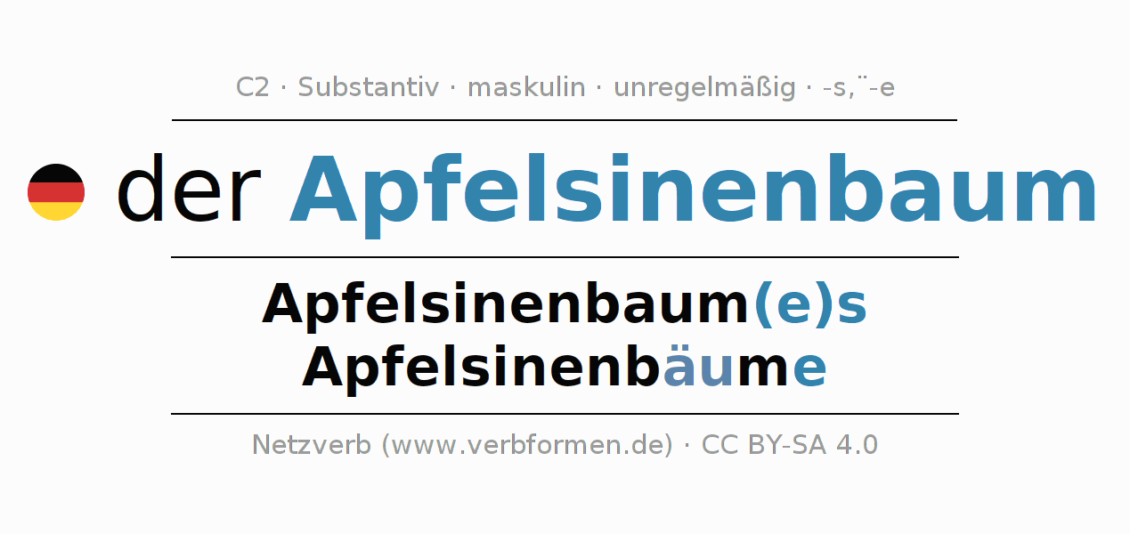 | Akk. | den Apfelsinenbaum | die Apfelsinenbäume |