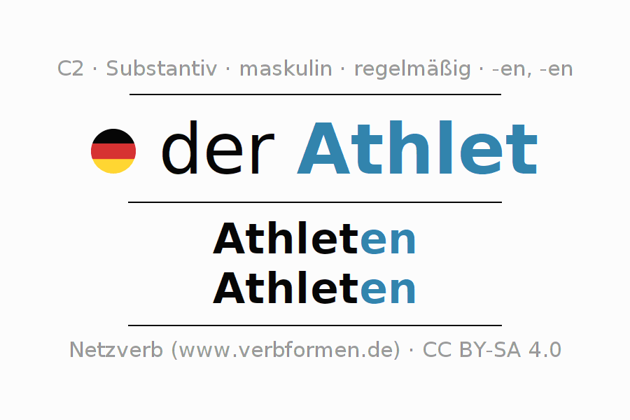 - Singular: der Athlet, des Athleten, dem Athleten, den Athleten