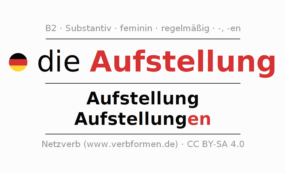 - Singular: die Aufstellung, der Aufstellung, der Aufstellung, die Aufstellung