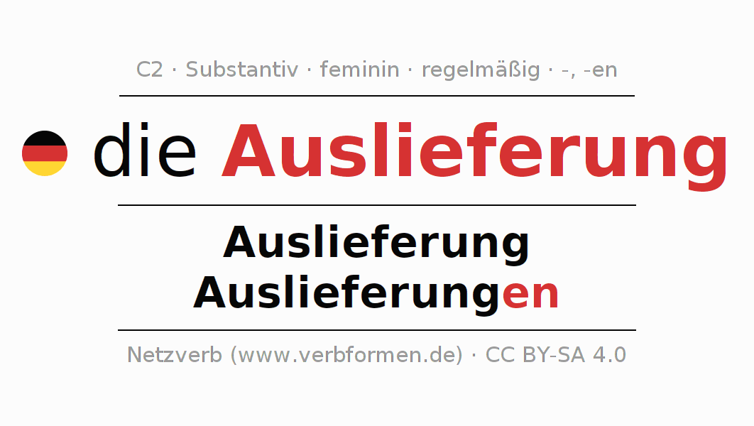 - Singular: die Auslieferung, der Auslieferung, der Auslieferung, die Auslieferung