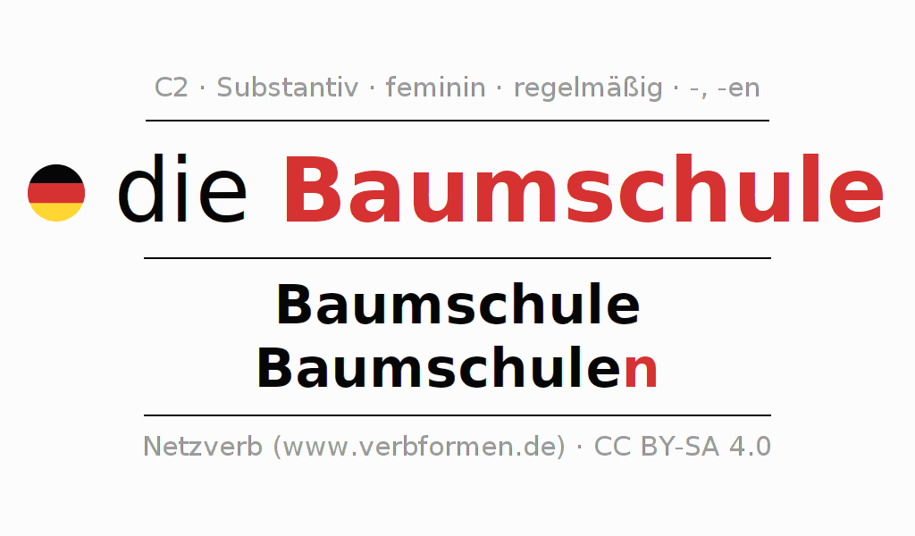 - Singular: die Baumschule, der Baumschule, der Baumschule, die Baumschule