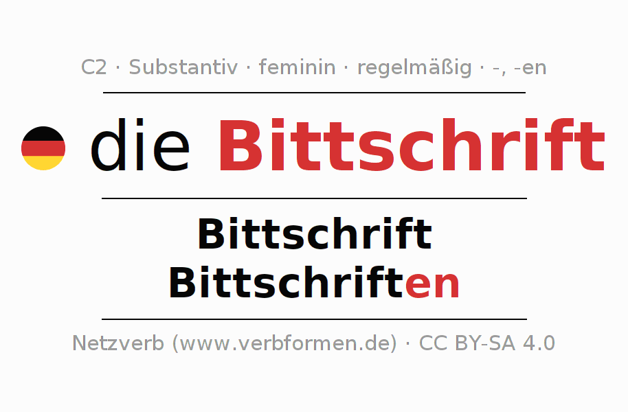 - Singular: die Bittschrift, der Bittschrift, der Bittschrift, die Bittschrift
