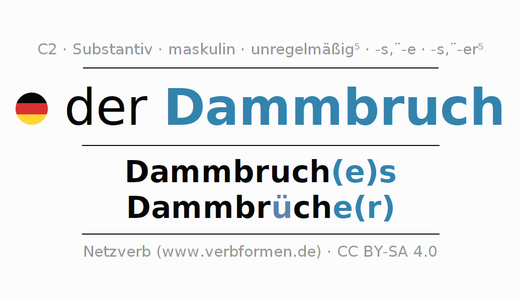 | Nom. | der Dammbruch | die Dammbrüche(r) |