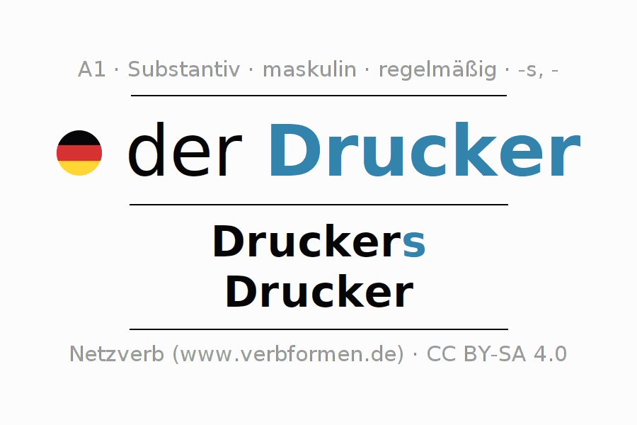 - Plural: die Drucker, der Drucker, den Druckern, die Drucker