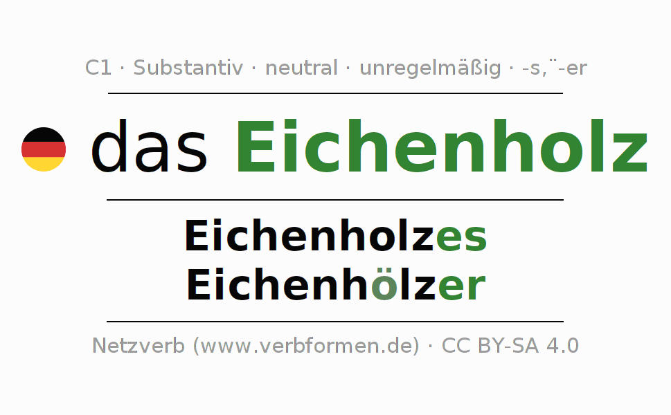 | Dat. | dem Eichenholz(e) | den Eichenhölzern |