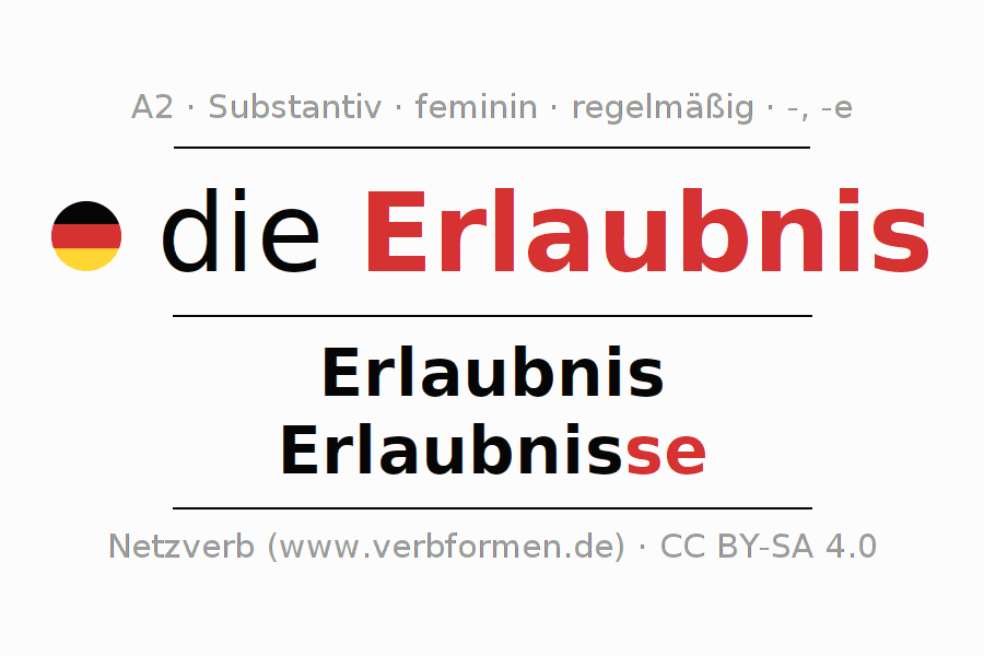 - Plural: die Erlaubnisse, der Erlaubnisse, den Erlaubnissen, die Erlaubnisse