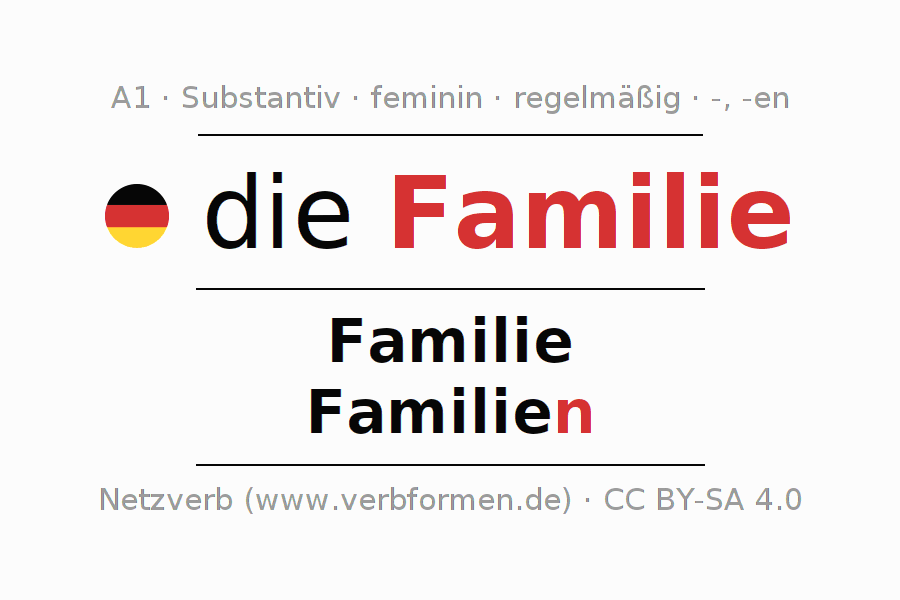 - Plural: die Familien, der Familien, den Familien, die Familien