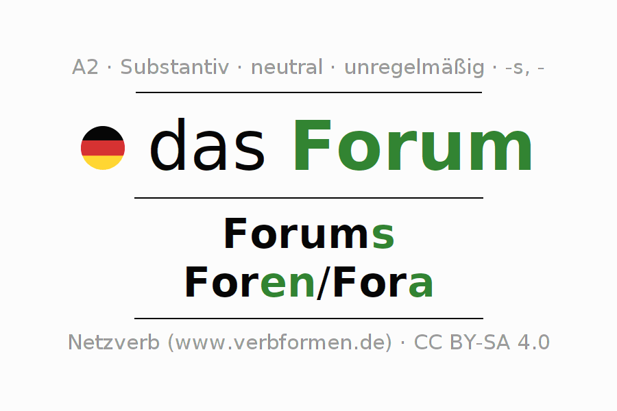 - Singular: das Forum, des Forums, dem Forum, das Forum