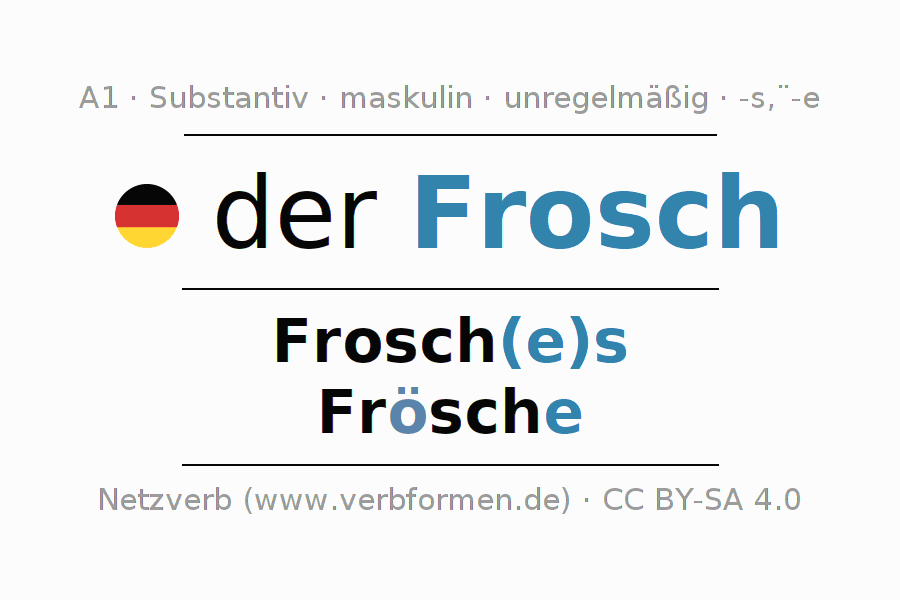 - Plural: die Frösche, der Frösche, den Fröschen, die Frösche