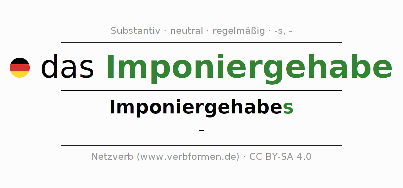Zusammenfassung aller Deklinationsformen des Substantivs, Nomens bzw. Nennworts Imponiergehabe in allen Fällen bzw. Kasus