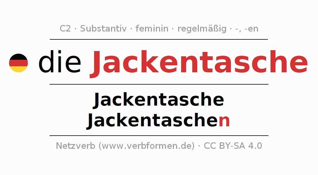 - Singular: die Jackentasche, der Jackentasche, der Jackentasche, die Jackentasche