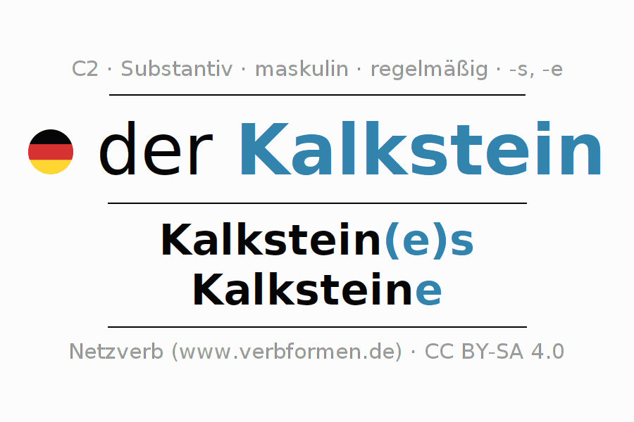 - Singular: der Kalkstein, des Kalkstein(e)s, dem Kalkstein(e), den Kalkstein