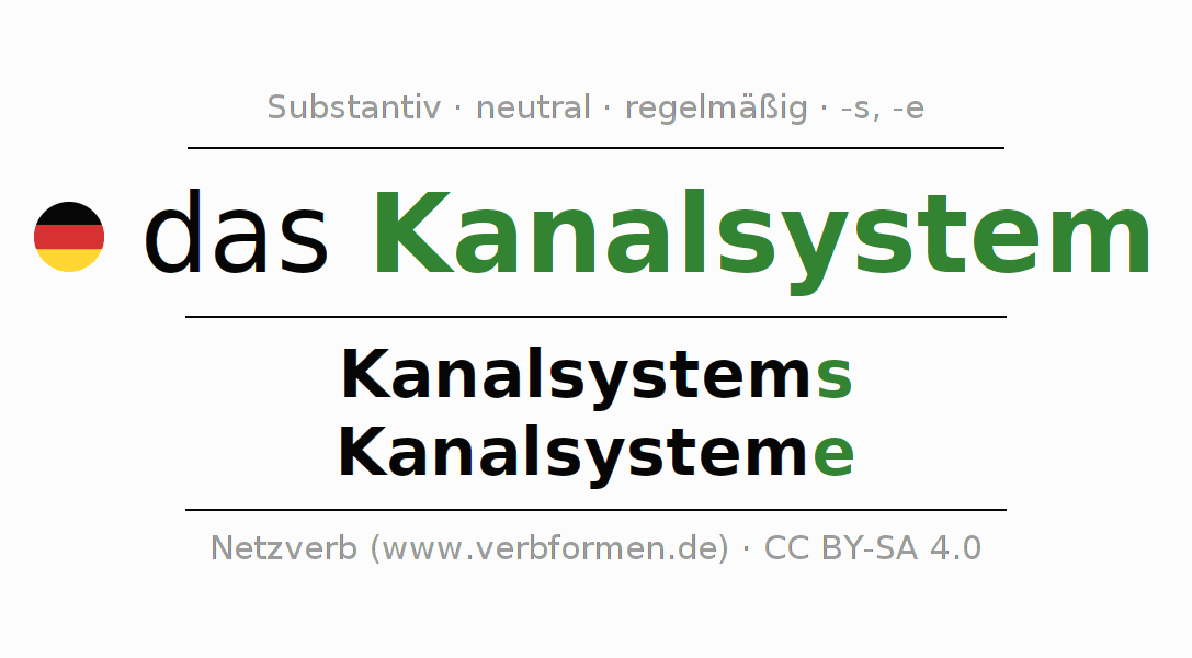 - Singular: das Kanalsystem, des Kanalsystems, dem Kanalsystem, das Kanalsystem