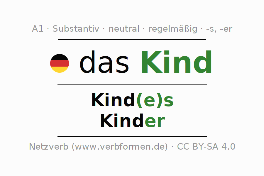 - Plural: die Kinder, der Kinder, den Kindern, die Kinder