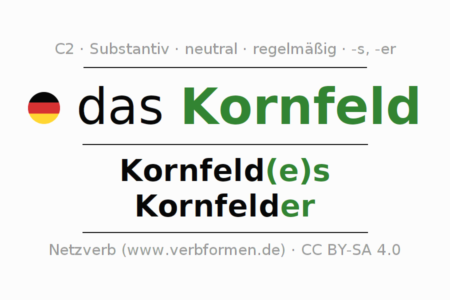 - Plural: die Kornfelder, der Kornfelder, den Kornfeldern, die Kornfelder