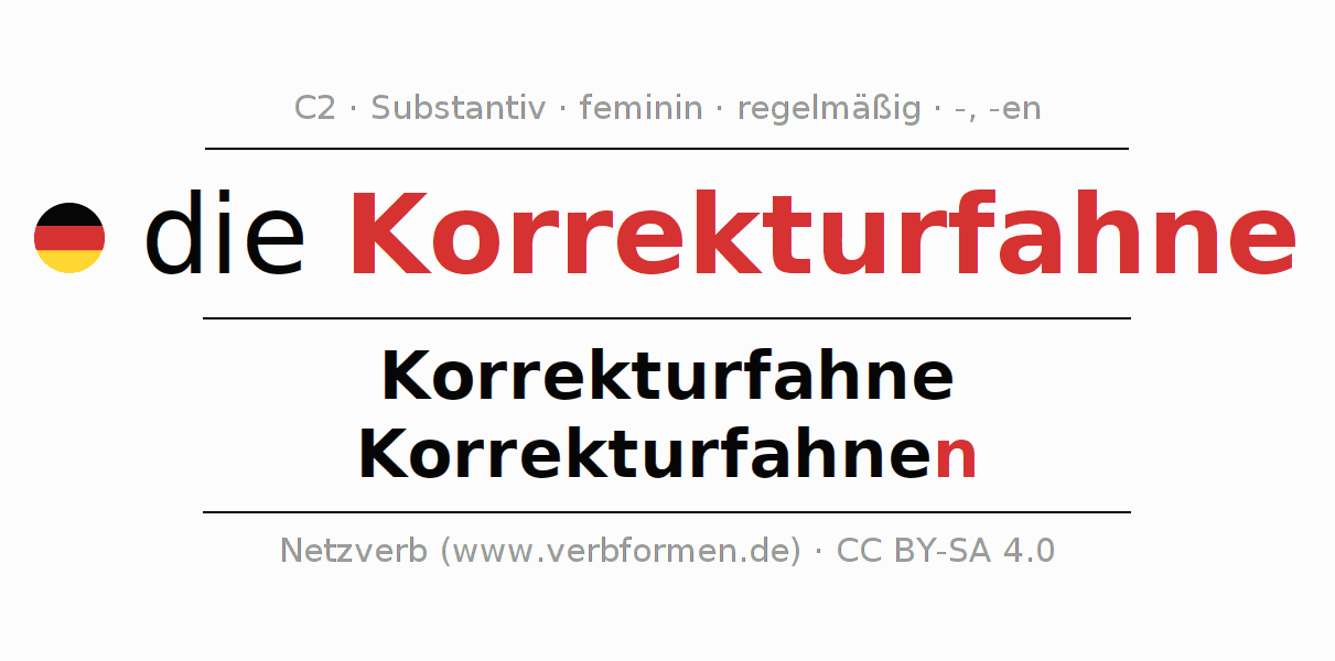 - Singular: die Korrekturfahne, der Korrekturfahne, der Korrekturfahne, die Korrekturfahne