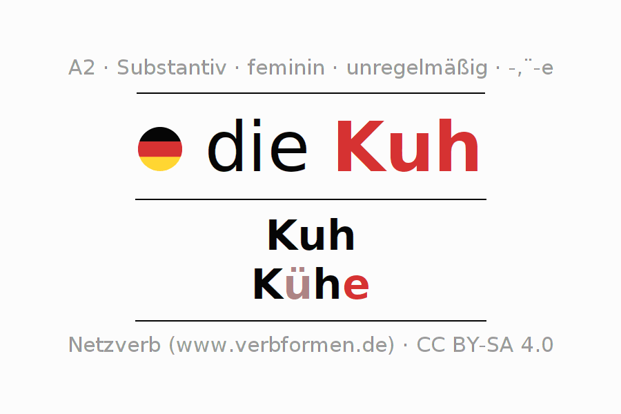 - Plural: die Kühe, der Kühe, den Kühen, die Kühe