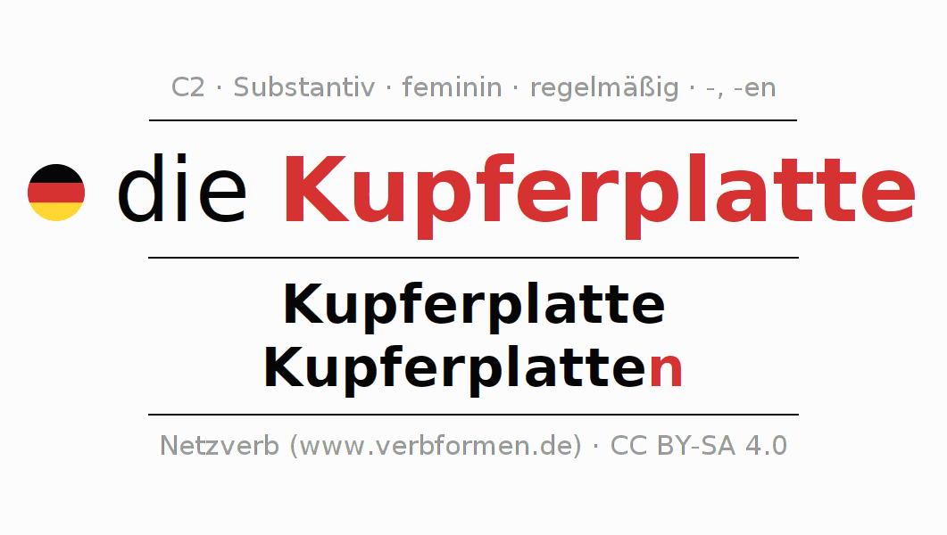 - Singular: die Kupferplatte, der Kupferplatte, der Kupferplatte, die Kupferplatte