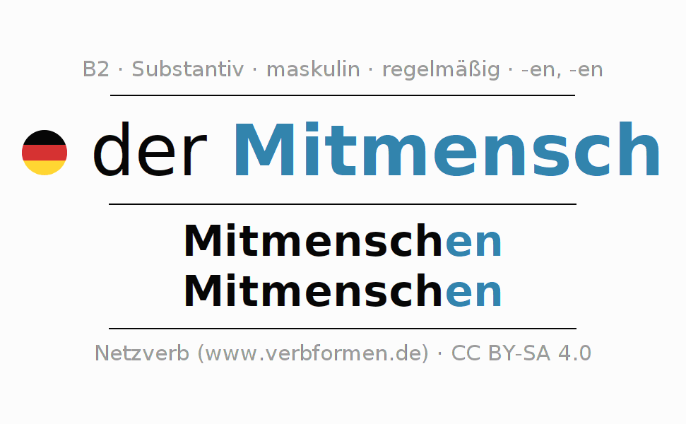 | Nom. | der Mitmensch | die Mitmenschen |