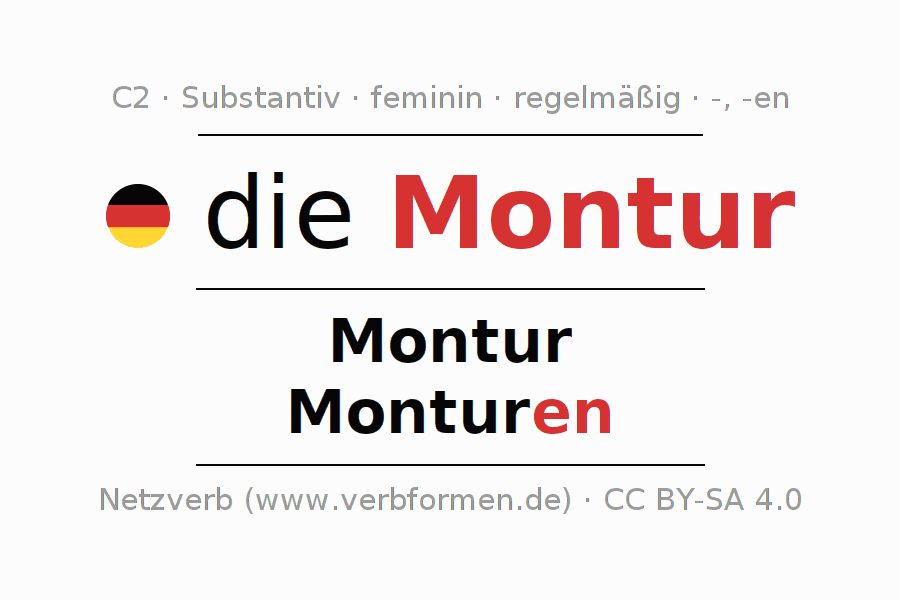 - Singular: die Montur, der Montur, der Montur, die Montur