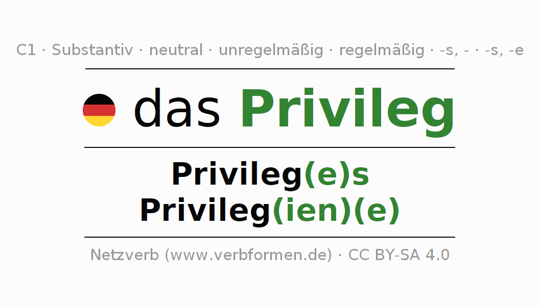 | Nom. | das Privileg | die Privileg(ien)(e) |